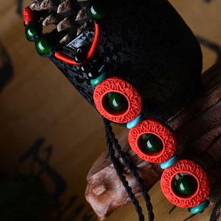 说明:非常有创意的一款藏式风情长款项链。做工非常精细,才拿到手后就非常的有层次感,选用多种石材混搭手工雕刻的各式配件制作而成。具有很高的收藏价值和实用价值